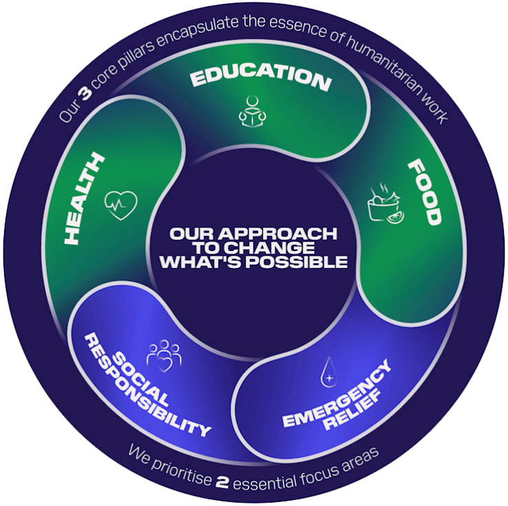 Empowering communities through purposeful support in health, education, and food while also focusing on emergency relief and social responsibility.